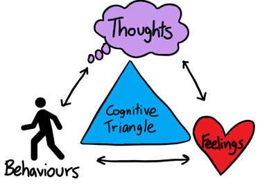 From the Cognitive triangle model (below), we can see that thoughts drive our emotions, feelings drive behaviour, and behaviour reinforces thoughts. When you assign truth to a thought, it becomes a belief.